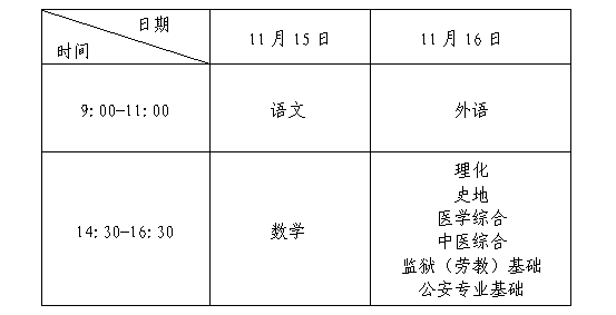 (4)公安类院校全部专业:语文、数学(文)、外语、公安专业基础。