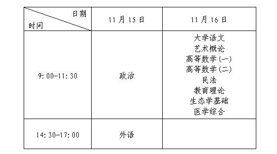 全国成人高校招生统一考试定于11月15日、16日进行。