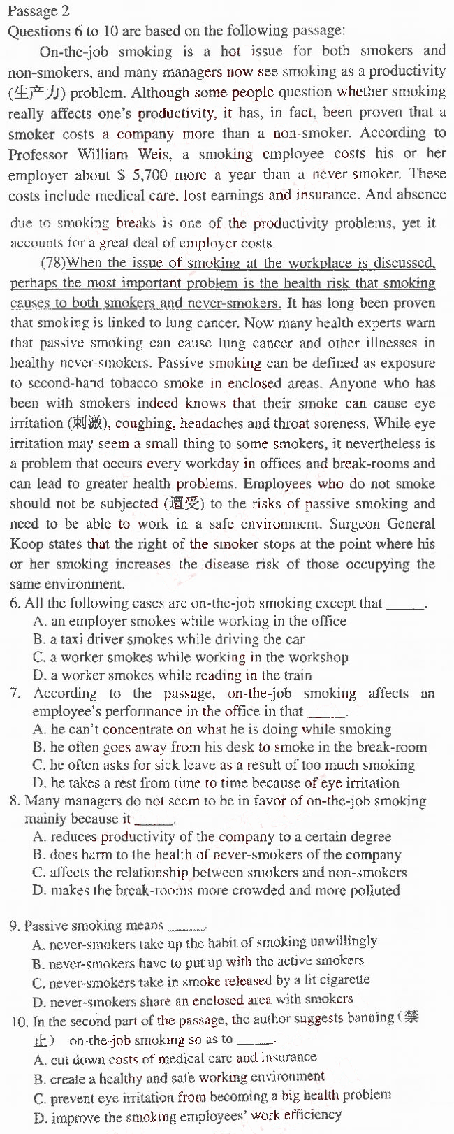 2008年11月北京成人英语三级A卷真题及答案8-2