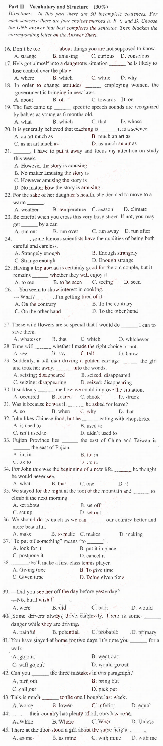 北京:2008年11月成人英语三级A卷真题及答案
