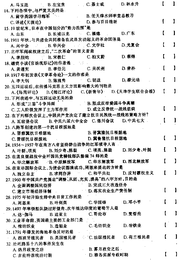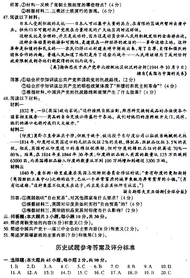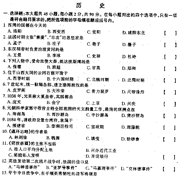 [成人考试]2001年全国成人高校招生考试历史试卷及参考答案 (450字)