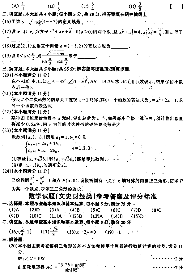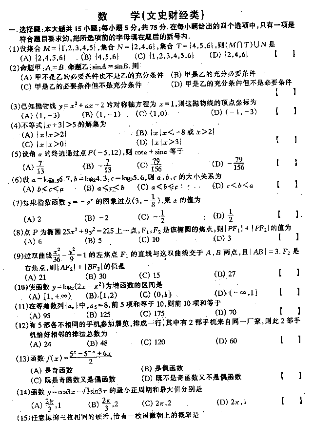 [成人考试]2001年全国成人高校招生考试数学(文)试卷及参考答案 (366字)
