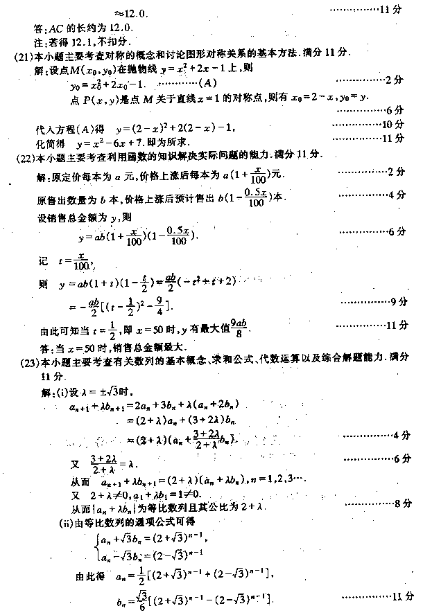 ->[成人考试]2001年全国成人高校招生考试数学(文)试卷及参考答案 (366字)
