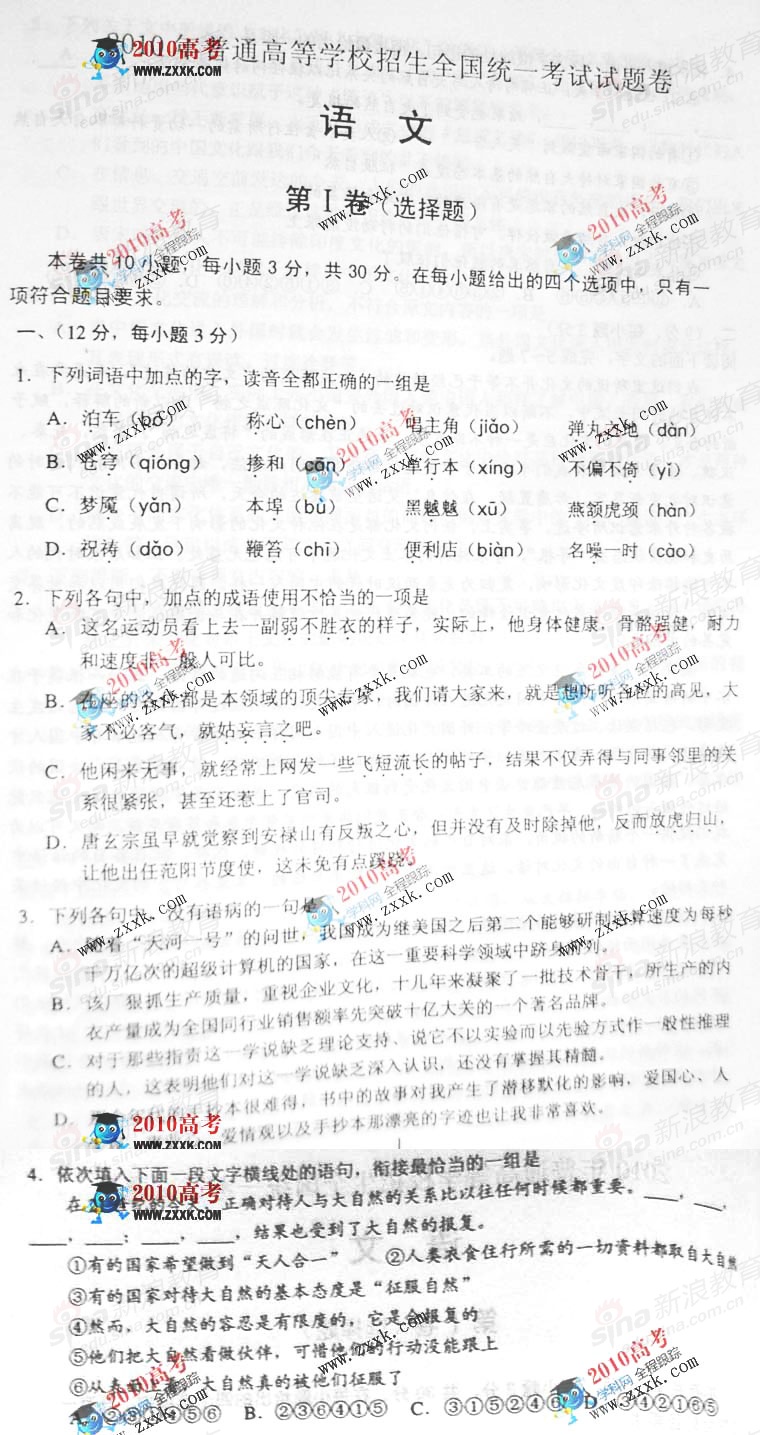 2010年高考语文试题(全国II卷)