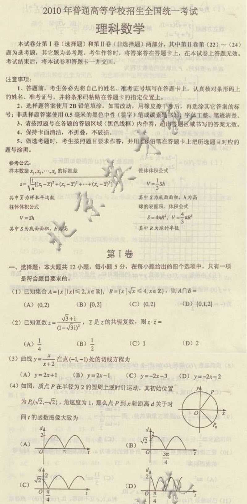 2010年高等学校全国统考理科数学(新课标全国卷)试题