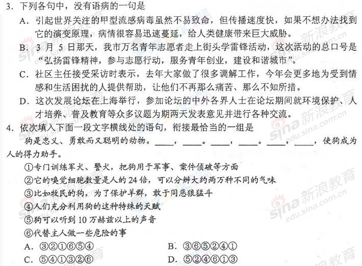 2009年高等学校全国统考语文试题(全国I卷)(2)