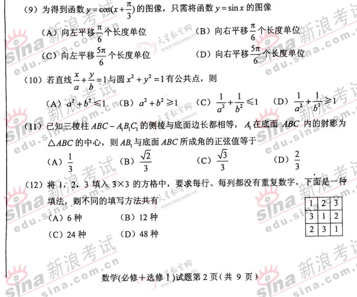 2008年高等学校全国统一考试数学文试题(全国I卷)(4)