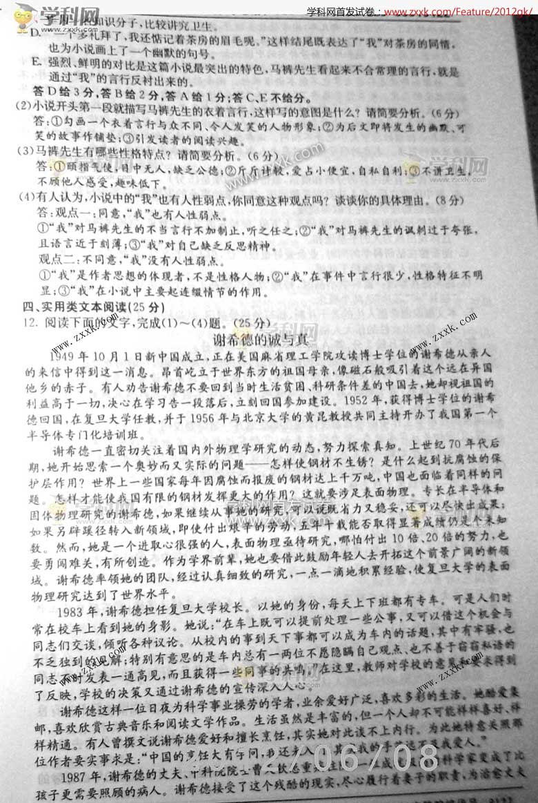 2012年陕西高考语文真题及答案(4)