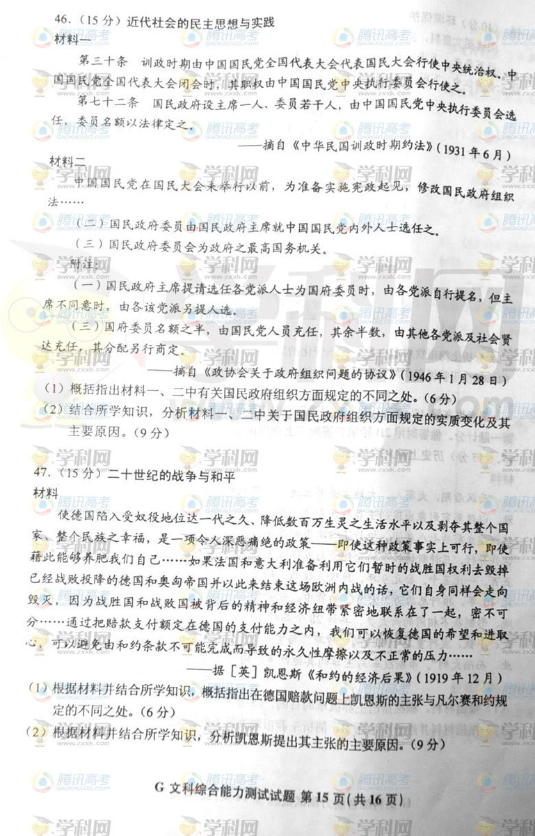 2012年辽宁高考文综真题及答案(15)