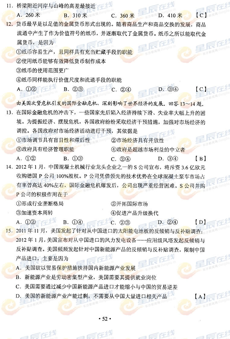 2012年陕西高考文综真题及答案(3)