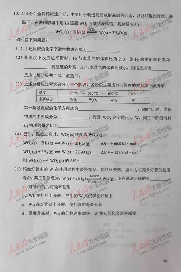 2012年天津卷高考理综真题及答案公布(19)