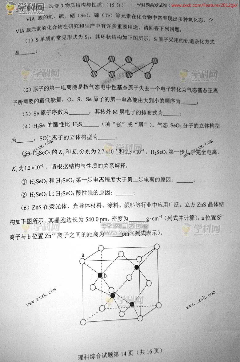 2012年辽宁高考理综真题及答案(图片版)(14)