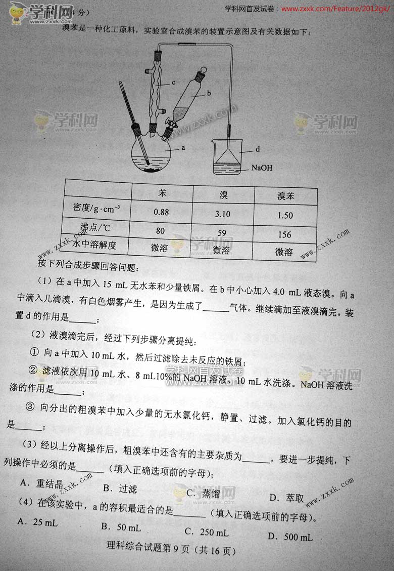 2012年辽宁高考理综真题及答案(图片版)(9)