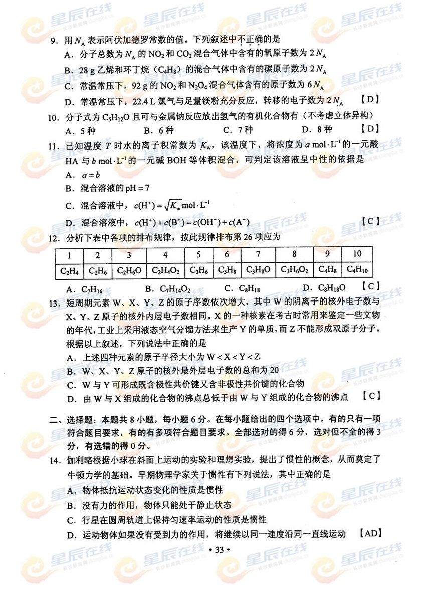 2012年陕西高考理综真题及答案(3)