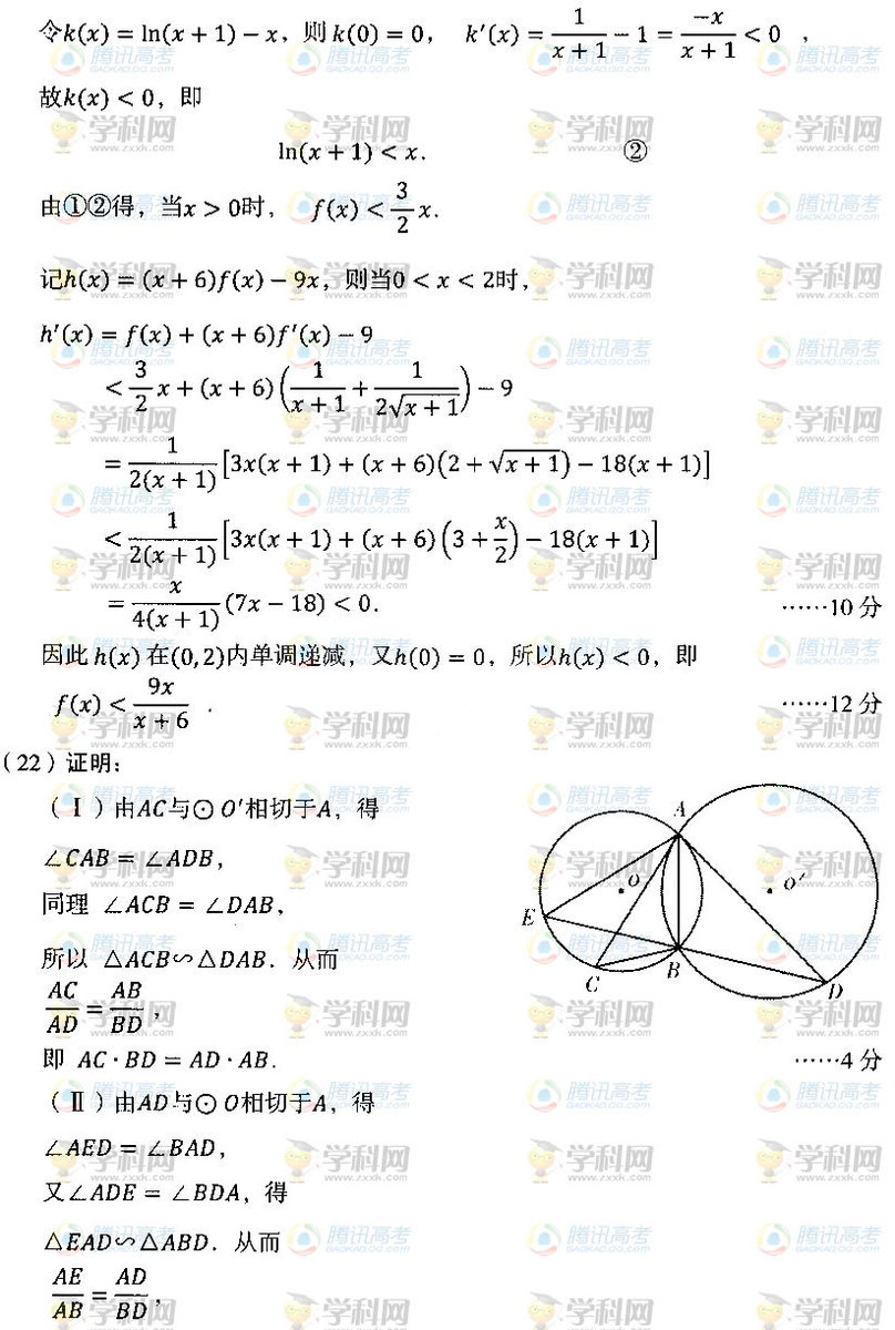 2012年辽宁高考数学(理)真题及答案公布(12)