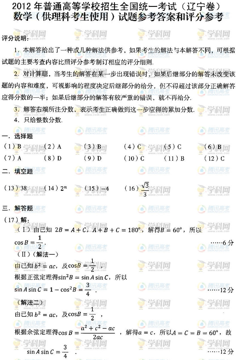2012年辽宁高考数学(理)真题及答案公布(7)