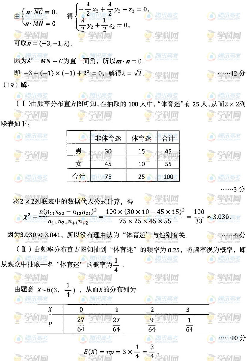 2012年辽宁高考数学(理)真题及答案公布(9)