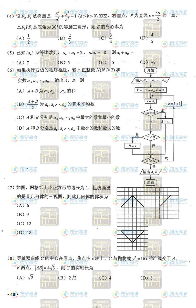 2012年海南高考数学(理)真题及答案(6)