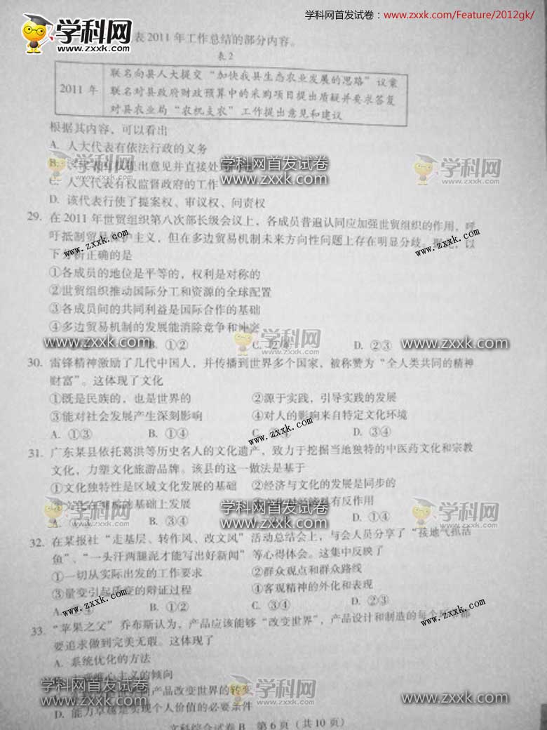 广东省文综卷B图片版-2012年普通高等学校招生统一考试(6)