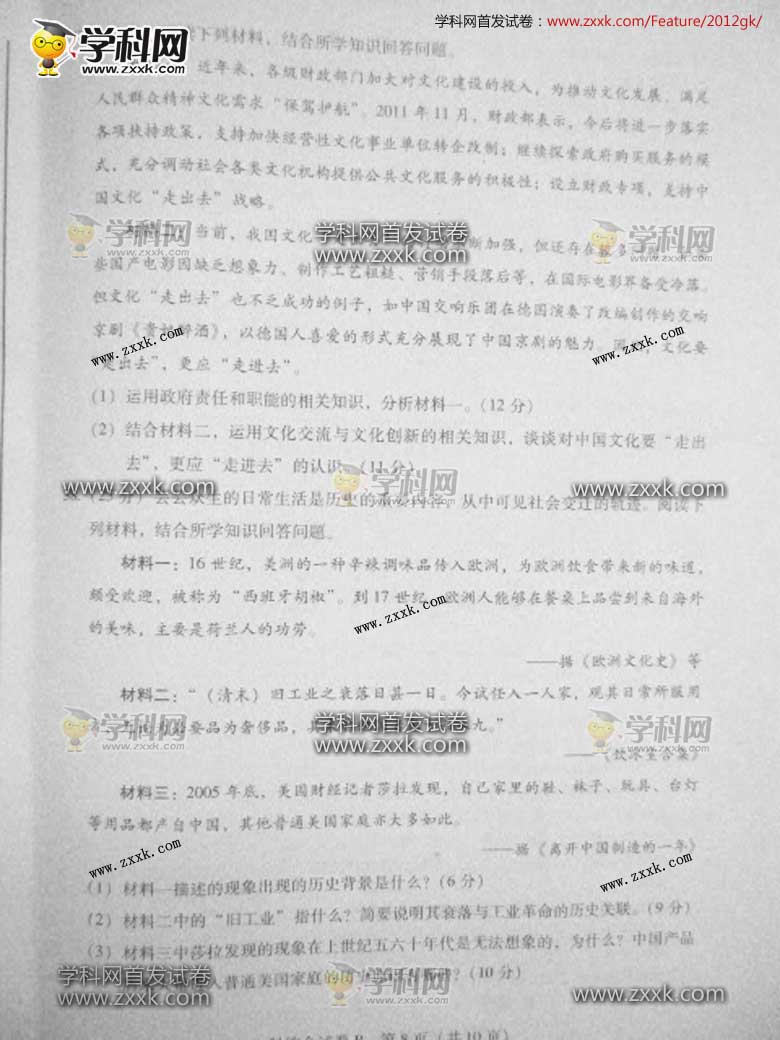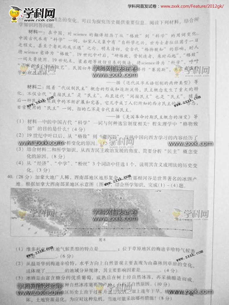 广东省文综卷B图片版-2012年普通高等学校招生统一考试(8)