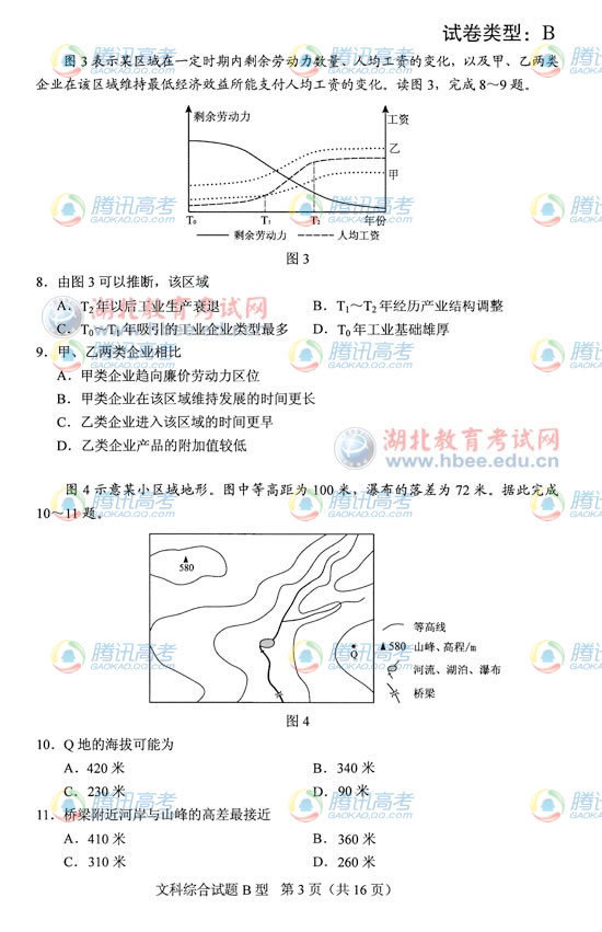 2012高考湖北卷B高考文综真题及答案公布(10)