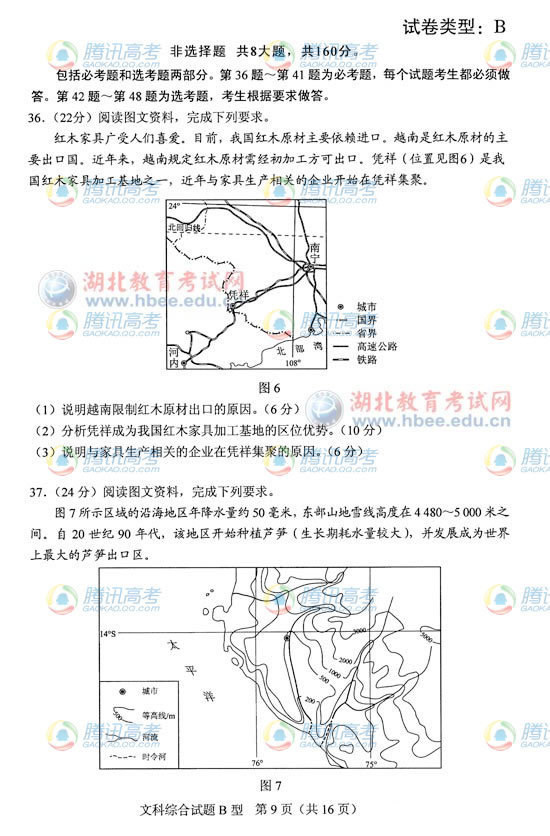 2012高考湖北卷B高考文综真题及答案公布(16)