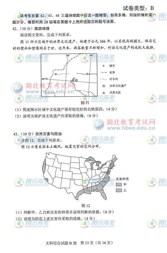2012高考湖北卷B高考文综真题及答案公布(5)