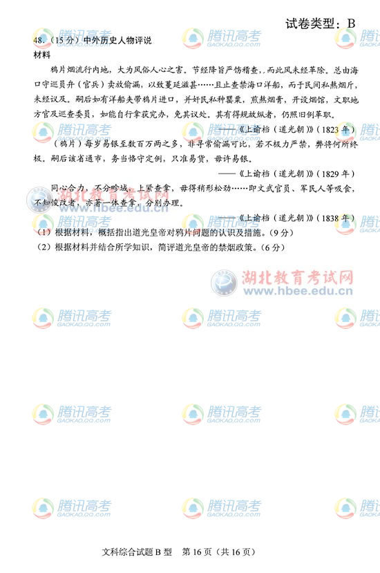 2012高考湖北卷B高考文综真题及答案公布(8)
