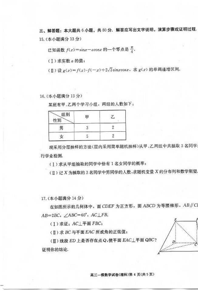 2013年西城一模(理科)数学试题及答案(4)