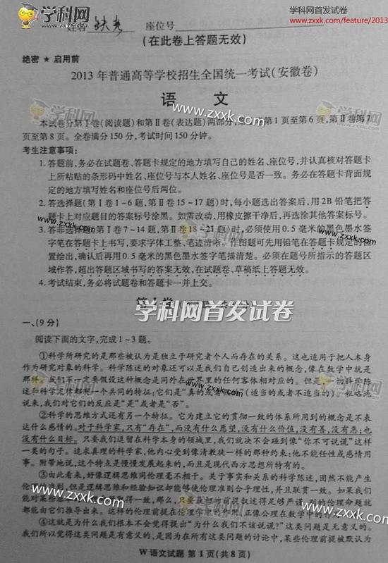 2013年安徽高考语文卷真题及答案(2)