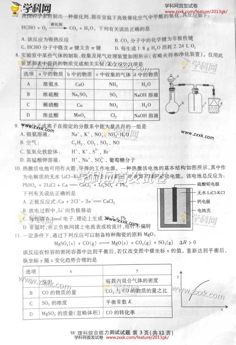 安徽2013年高考理综试题及答案(3)