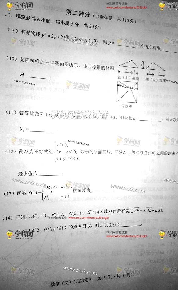 2013北京高考数学文科试题抢先看(图文版)(3)