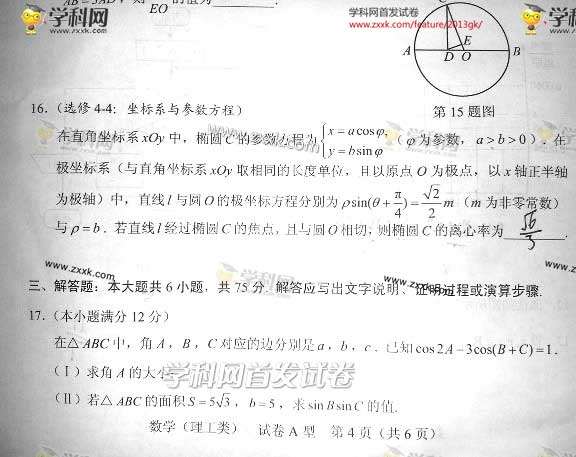 2013湖北高考数学理科试题A卷及答案(图片版)(6)