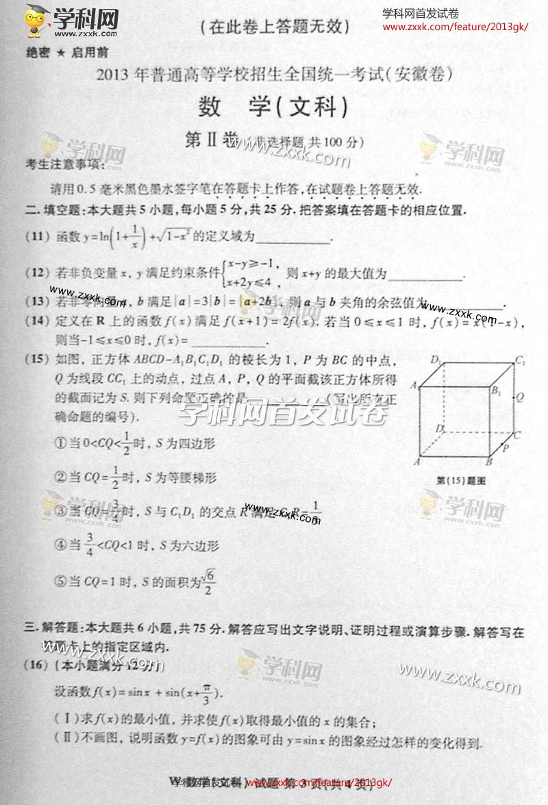2013安徽高考数学文科试题抢先看(图片版)(3)