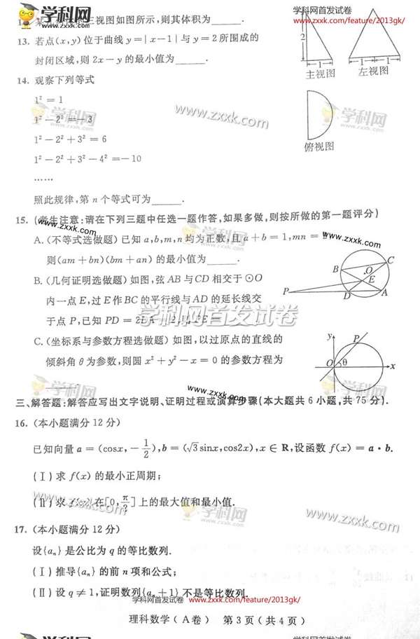 2013陕西高考数学理科试题抢先看(图片版)(3)