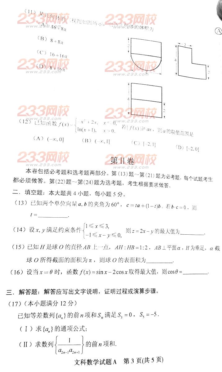河南2013高考数学文试题及答案(新课标全国卷I)(3)