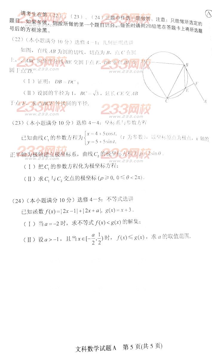 河南2013高考数学文试题及答案(新课标全国卷I)(5)