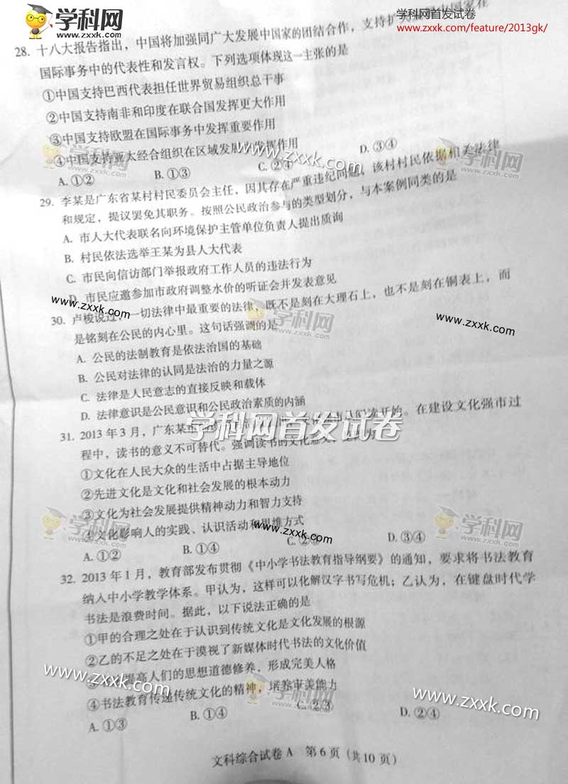 2013年高考广东文综试卷图片版(6)