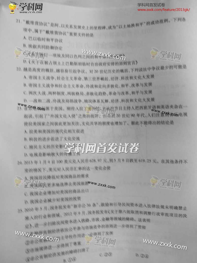 2013浙江文综卷试题及答案抢先看(图片版)(5)
