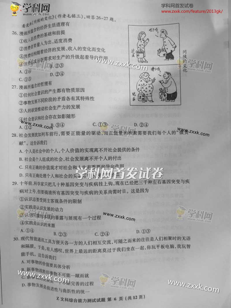 2013浙江文综卷试题及答案抢先看(图片版)(6)