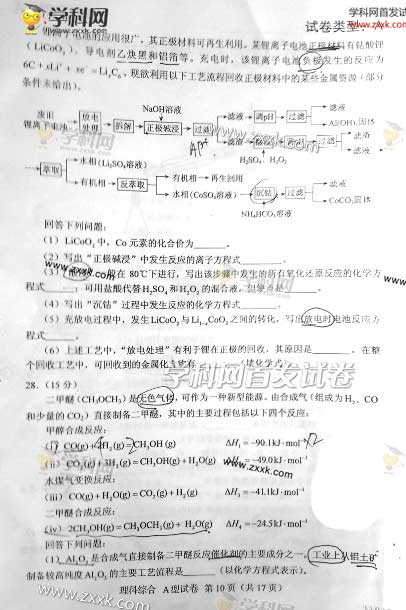 2013高考新课标I理综卷试题及答案(图片版)(10)