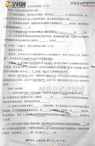 2013年江西高考理综卷试题及答案(图片版)(17)