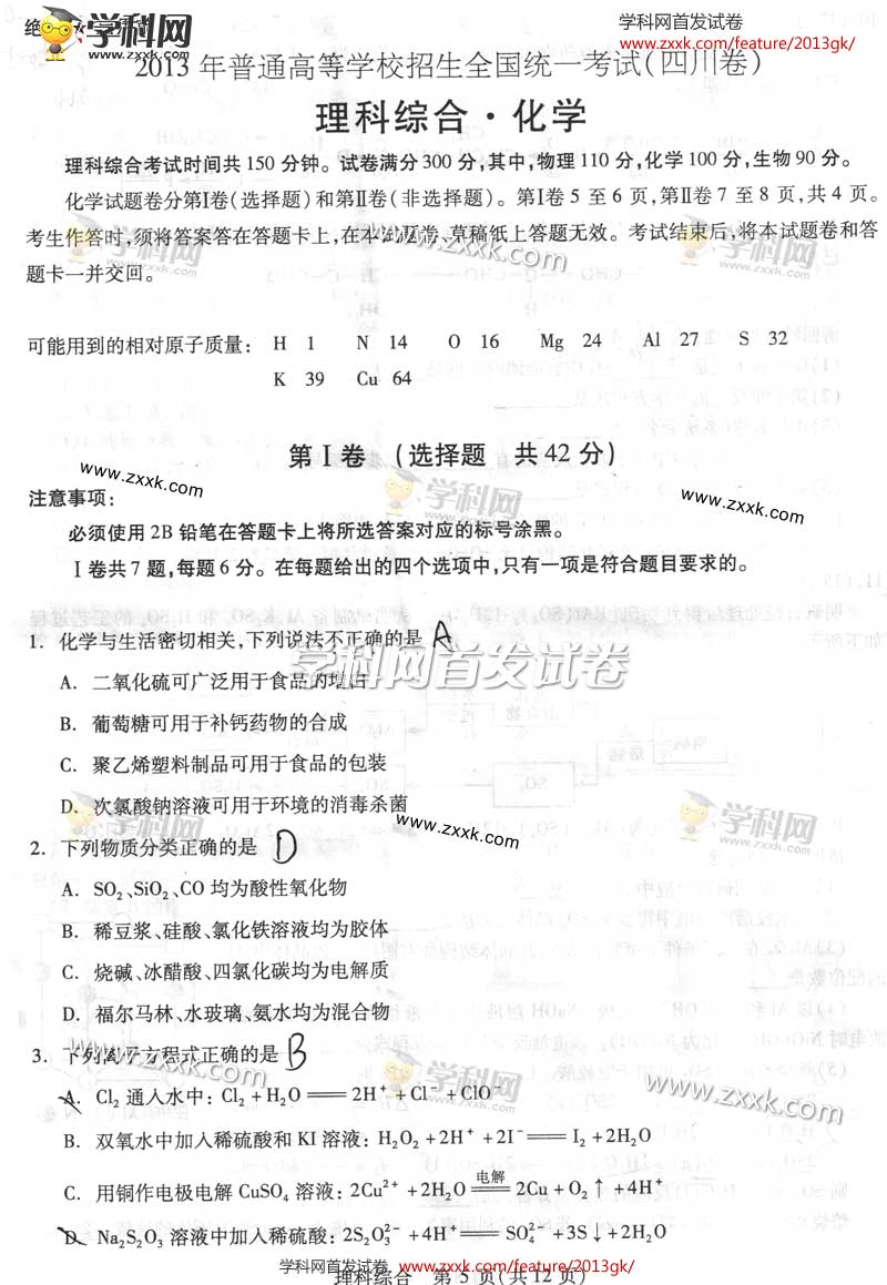 2013年高考四川理综试卷图片版(5)