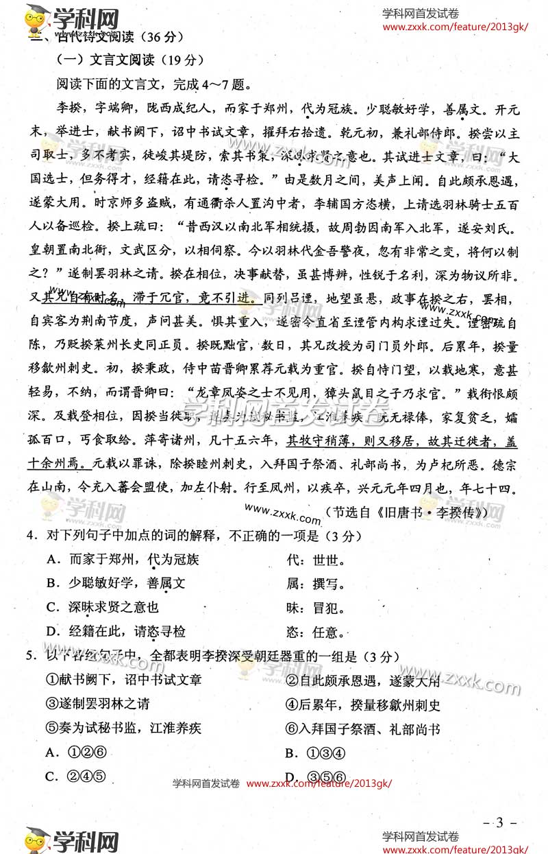 2013年高考新课标Ⅱ语文卷试题及答案图片版(3)