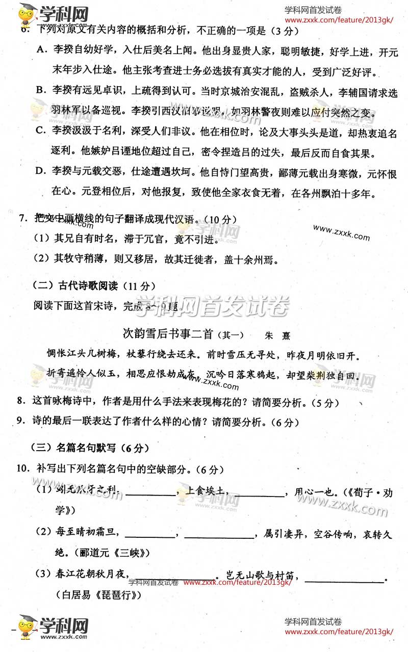 2013年高考新课标Ⅱ语文卷试题及答案图片版(4)