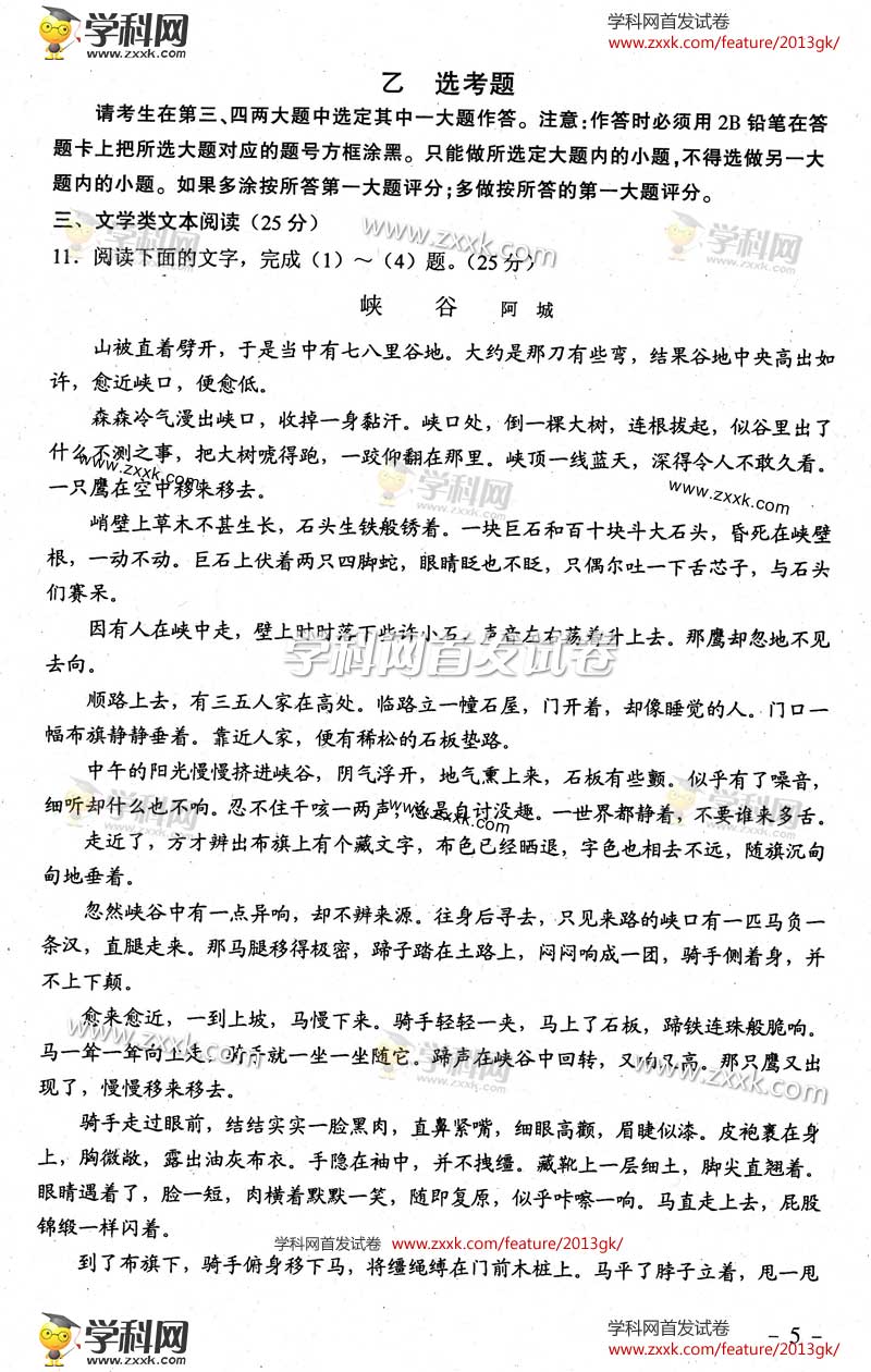 2013年高考新课标Ⅱ语文卷试题及答案图片版(5)