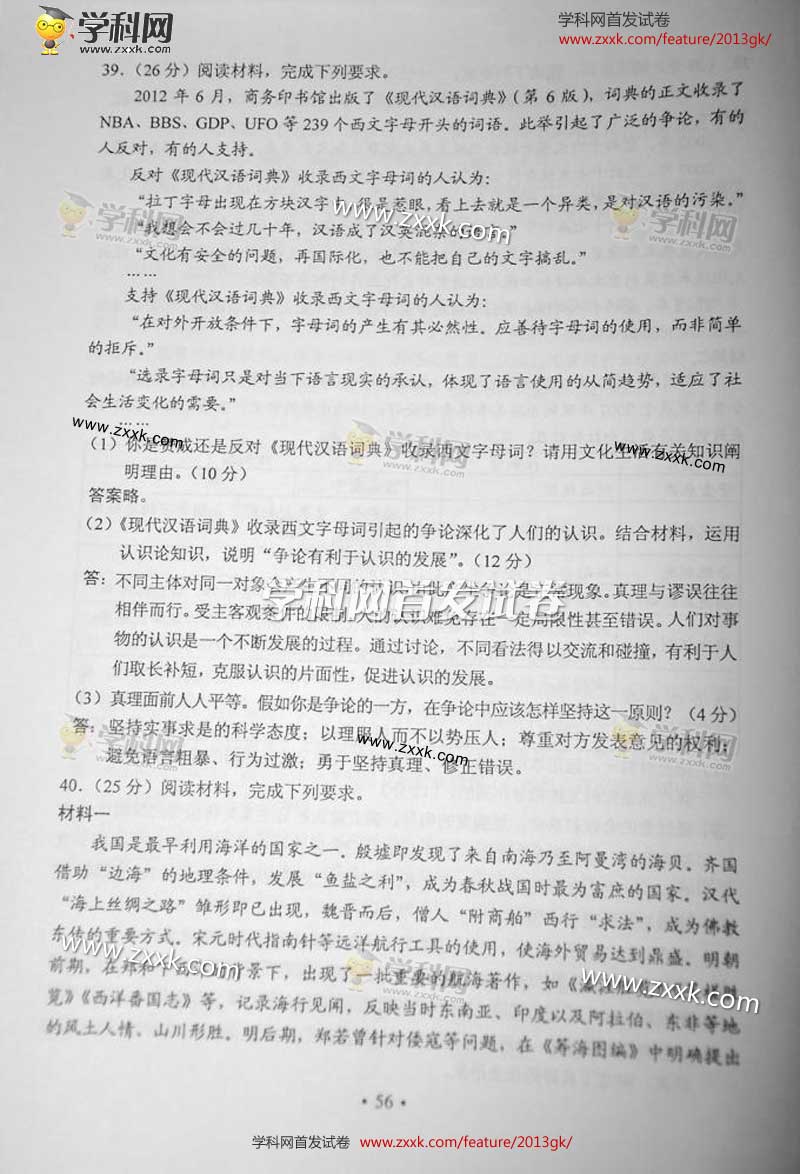 2013年辽宁高考文综卷试题及答案(图片版)(11)