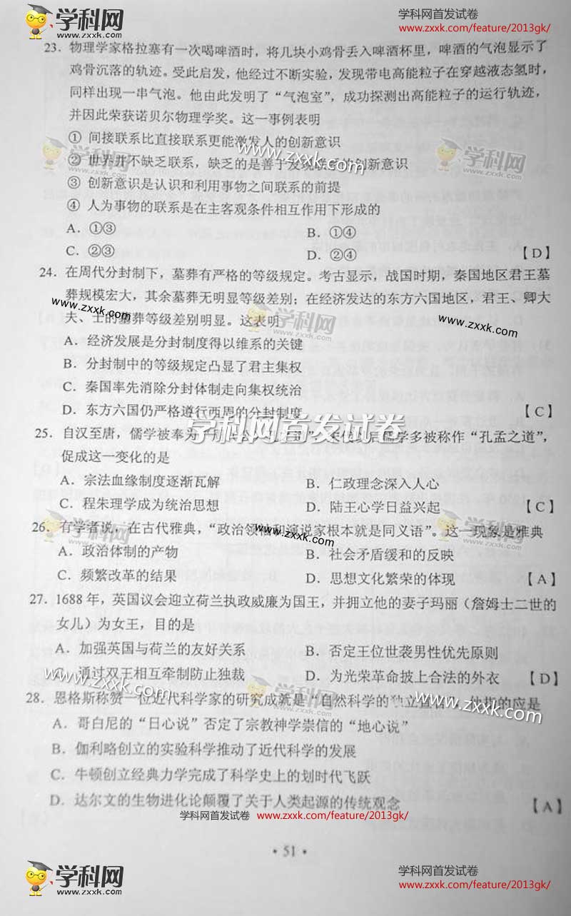2013年江西高考文综卷试题及答案(图片版)(6)