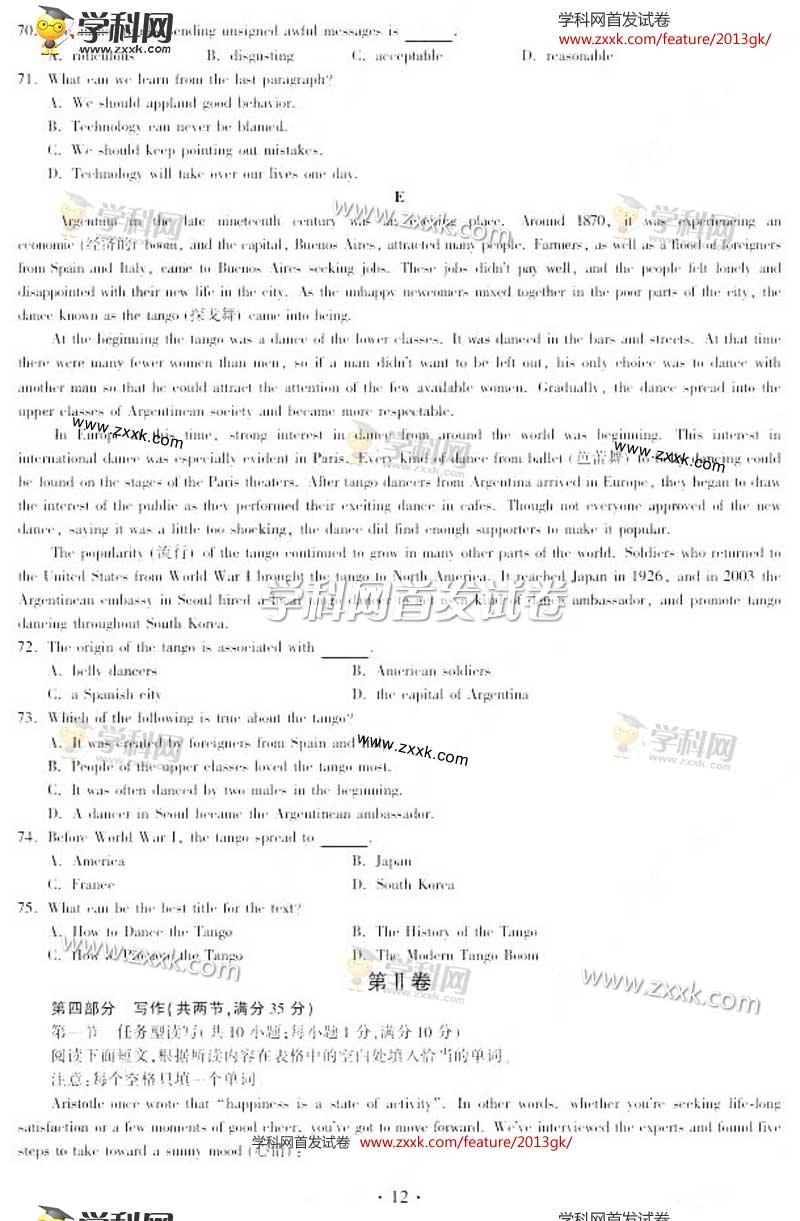 2013年安徽高考英语卷试题及答案(图片版)(7)