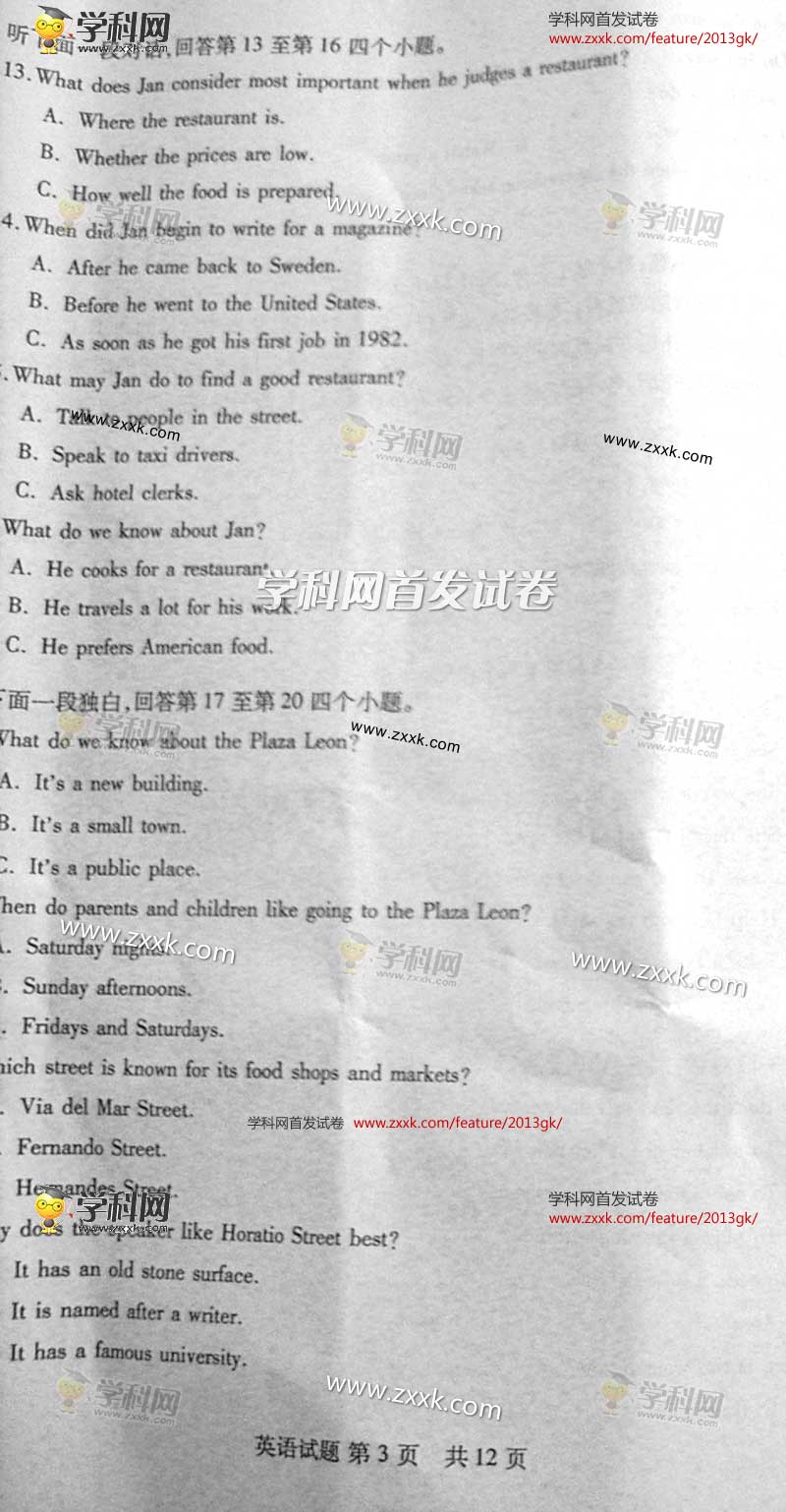 2013年山东高考英语卷试题及答案(图片版)(4)